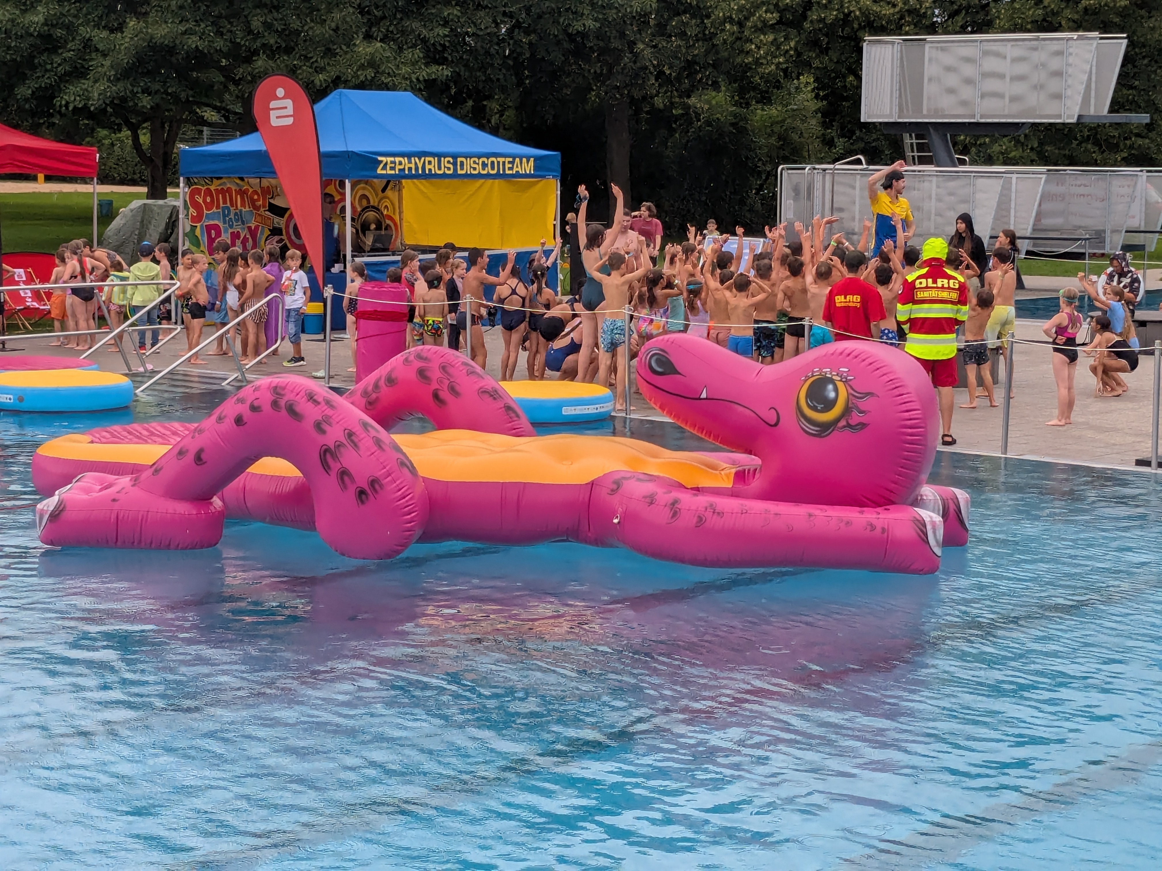 Riesen-Wasserspektabel mit dem Zephyrus-Discoteam am Dienstag, dem 04.August 2026 von 12:00 - 16:00 Uhr im Schwimmbad Babenhausen