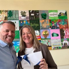 Das Bachgaugymnasium in Babenhausen erhält das Siegel Kultur Schule, als erstes und einziges Oberstufengymnasium in ganz Hessen. Schulleiterin Anja Heimer ist stolz auf diese Auszeichnung, die ein Verdienst der Lehrerinnen und Lehrer und auch ganz besonders der Schülerinnen und Schüler ist. Mit diesem Siegel sollen kreative Ideen und Projekte umgesetzt werden und auch unterstützt werden. Es sollen Kreativität und Kunst in allen Lebens-und Lernbereichen eine Rolle spielen und Schülerinnen und Schüler befähigen am gesellschaftlichen und kulturellen Leben gestaltend teilzuhaben. Das ist das Motto des Kultur – Schule – Teams am Bachgaugymnasium. Dieses tolle Engagement möchte auch ich unterstützen, indem ich dem Förderverein eine finanzielle Zuwendung zukommen lasse. Herzlichen Glückwunsch zu dieser Auszeichnung. Ich freue mich, dass das Engagement hier gewürdigt wurde.