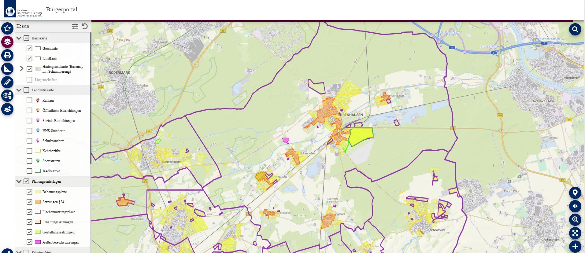 Im Bürgerportal des Landkreises Darmstadt Dieburg können Sie den Flächennutzungsplan inklusive der einzelnen
